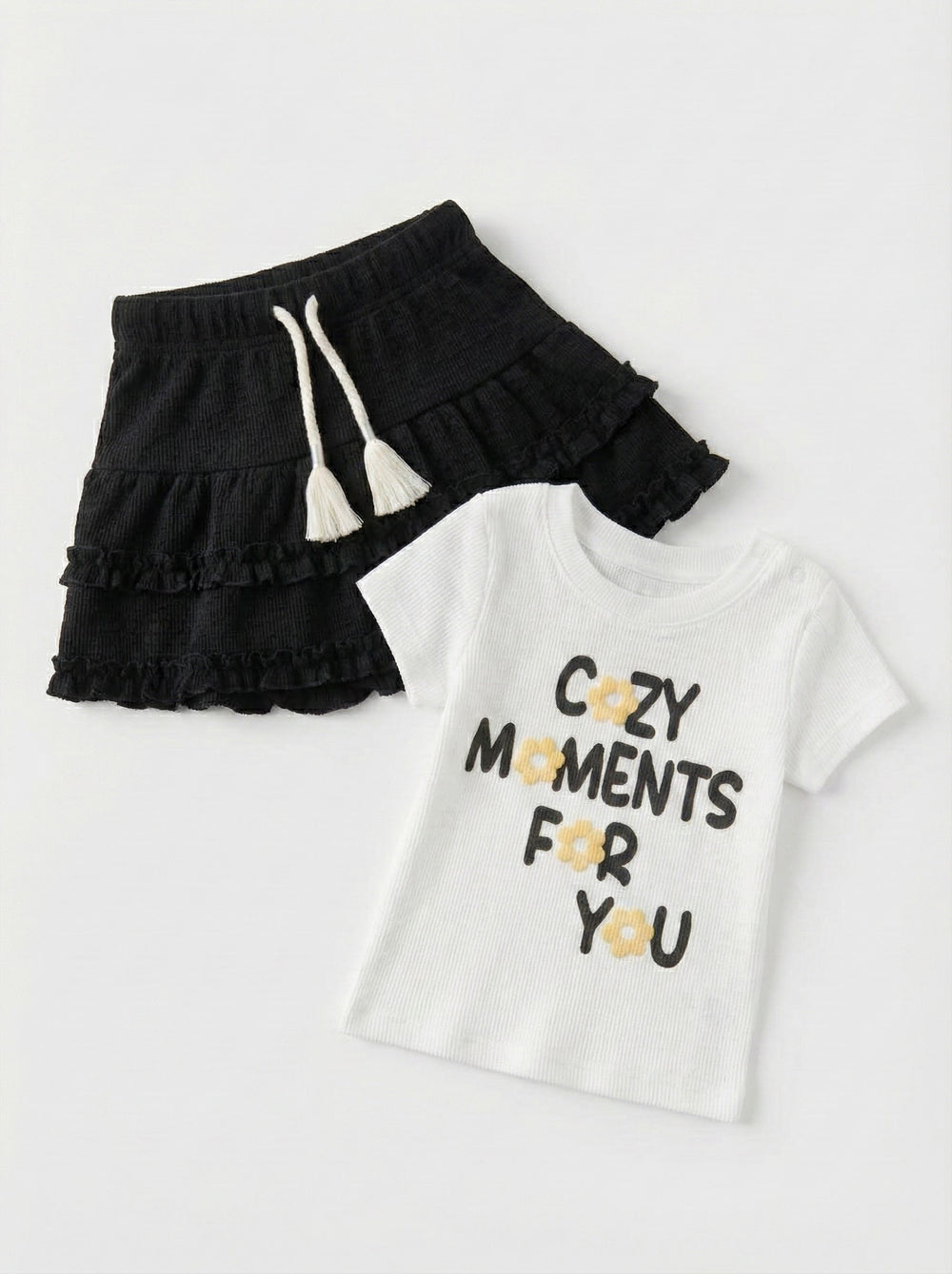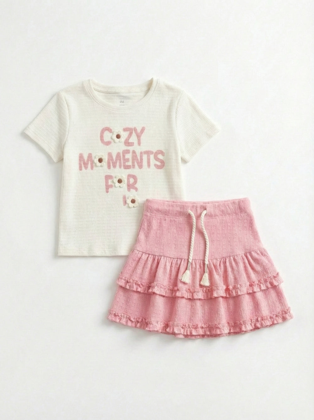 חליפה עם חצאית לילדות מבד ריב פרחונית